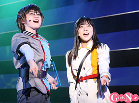 ハロー!プロジェクトの8人組ガールズグループ・Juice=Juiceの、4年ぶりとなる主演舞台『演劇女子部「タイムリピート~永遠に君を想う~」』が28日、東京・全労済ホール / スペース・ゼロで開幕。初日開演前には公開ゲネプロを行い、キャストたちが撮影に応じたほか、メインキャストの稲場愛香さんと宮本佳林さんが記者会見に登場した。