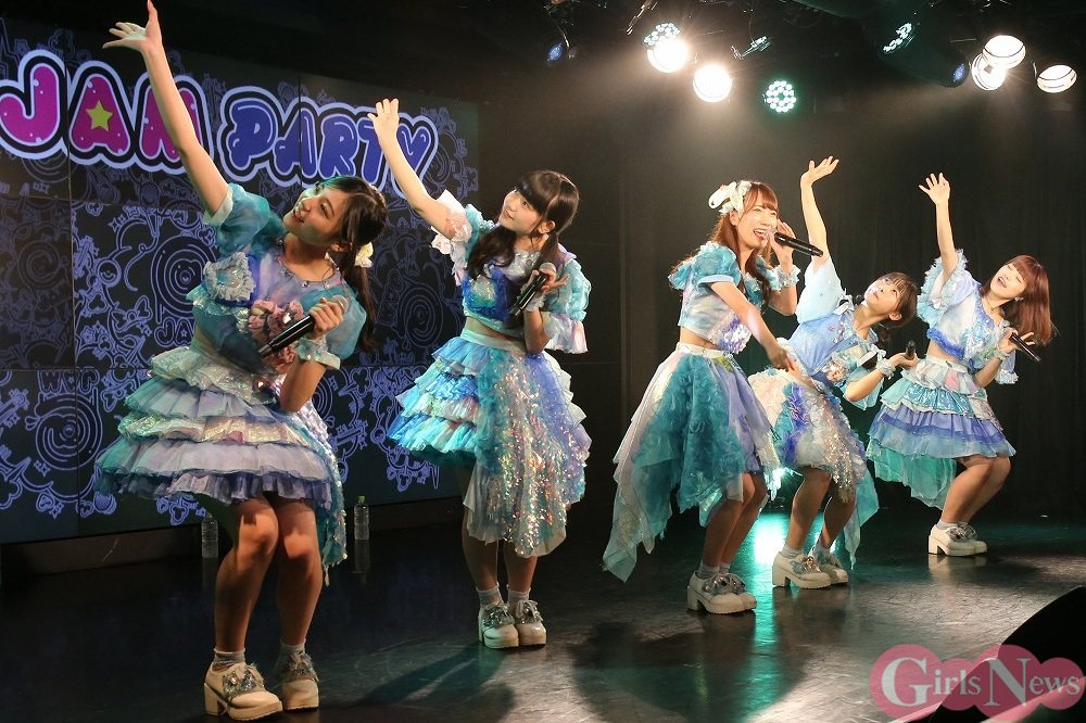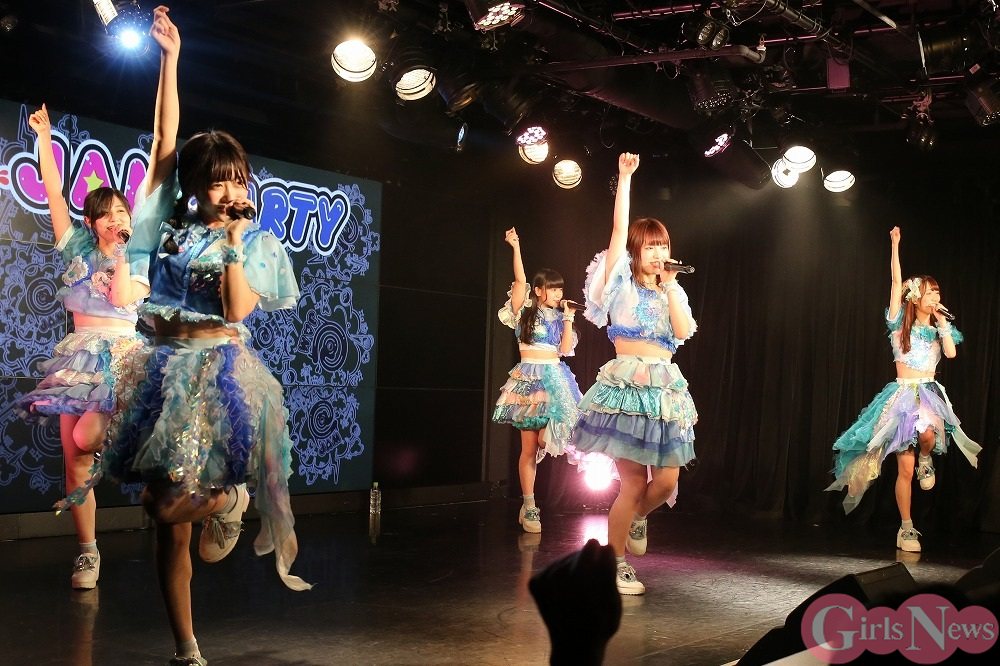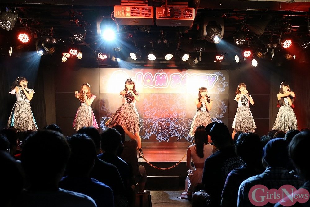 次に登場したのは@JAM PARTY初登場の原宿駅前パーティーズNEXT。オープニングの『オレンジの夏』で会場の空気を変え、この日いちばんの声援を受けて『おとぎ話だね』など弾けた熱いステージを展開。MCでは9月21日よりチーム名が「LiKE」と変更になることが発表された。