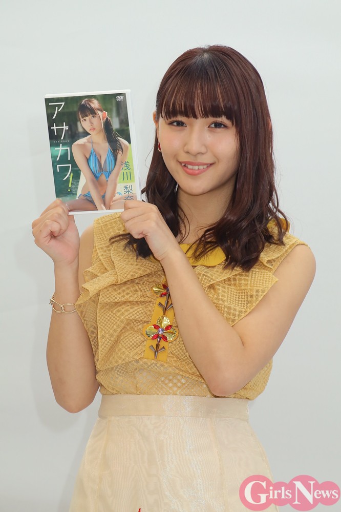 浅川さんは、今年の春にグアムで撮影された映像を中心に作られた今回のDVDのについて、「ヴァーチャルデートが楽しめるような一作。爽やかな姿だったり、ちょっと大人っぽい姿だったりと本当に盛り沢山になっております。私のあざとかわいい“アザカワ”な部分をたくさん見ていただけたら」と内容を紹介した。
