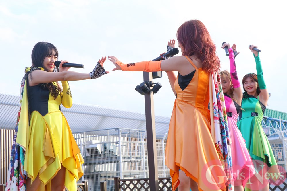 ミニライブでは、新曲『愛愛ファイヤー!!』をはじめ、『アッパーディスコ』『Next Stage』とハイテンションなパフォーマンスで会場を盛り上げ、さらに『このメロディを君と』を熱唱した。