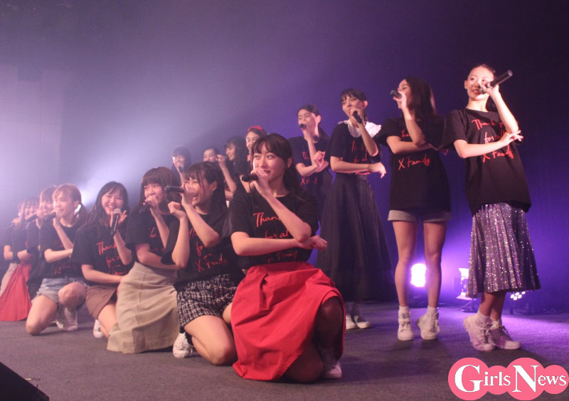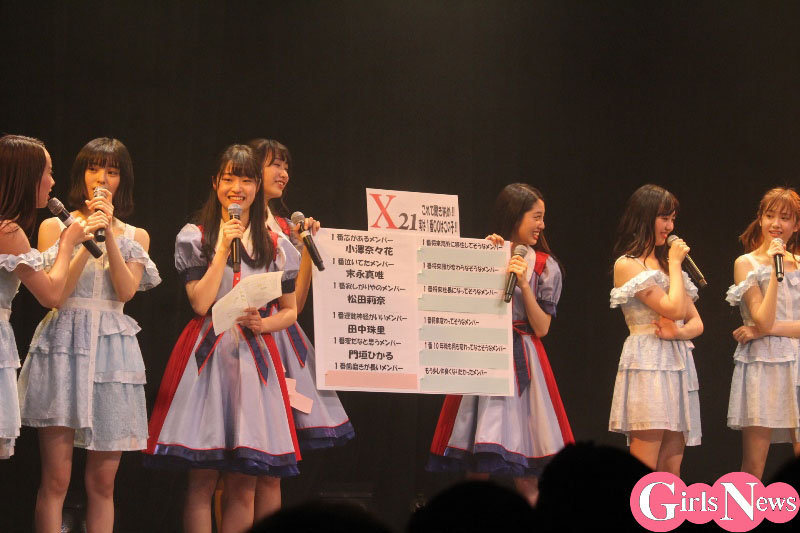 その後も「X21は私の居場所でした」(田中珠里さん)、「この出会いは奇跡だと思うのでずっと大切にしていきたいと思います。X21にいたことで人との出会いのありがたさを実感できました」(小澤奈々花さん)、「これからもX21の曲をたくさん聴いてほしいです」(松田莉奈さん)、「これから個人で活動していく上で、守りたい場所、守りたい人たちをたくさん作っていけるように頑張っていきたいと思います」(上水口萌乃香さん)など、それぞれの思いを語っていった。思いあふれて言葉に詰まるメンバーもいた。