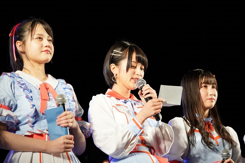 全11曲を披露した後、ファンからのアンコールに答え登場すると、リーダーの山本杏奈さんより、「ここでお知らせがあります。お休みをさせていただいていた佐々木舞香ですが、活動再開することが正式に決定しました!今日この場で本人からファンのみなさまにご挨拶させてください!舞香!」と活動休止中だった佐々木さんを呼び込むサプライズ演出が。