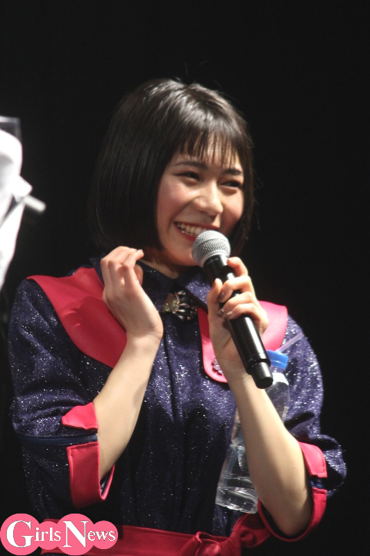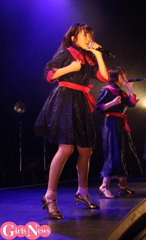 この日は、先日公開されたばかりの、紺と赤のコートふうの新衣装で登場した4人。第1部のライブでは、前半は『Never ever』『Partition Love』『Limited addiction』『深海-Hi-ra Mix-』『existence』『Attack Hyper Beat POP』など、女子流のパフォーマンスのかっこよさをじっくりと堪能できるナンバーを次々と繰り出し、観客を魅了していた(実はこの日のセットリストは、2月9日の“肉の日”にちなんだ語呂合わせの意味合いがあったと、最後に山邊未夢さんから明かされた)。