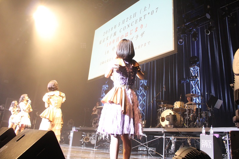 最後のMCでは、トーク中の4人の背後にスクリーンが登場。東京女子流のこれまでの歩みが映し出され、デビュー当時の幼い頃の映像に思わず笑顔がこぼれる4人。思い出話に花を咲かせたり、映像で流れている曲を口ずさんだりする中、2011年の中野サンプラザ公演の模様や二度の武道館公演(2012年、2013年)の映像が。女子流10年目に向けて、もう一度あの場所へ戻ろうというメッセージが込められているのかと思ったところで、「2019年5月25日(土) 東京女子流 CONCERT*07『10年目のはじまり』in 中野サンプラザ」の文字が。