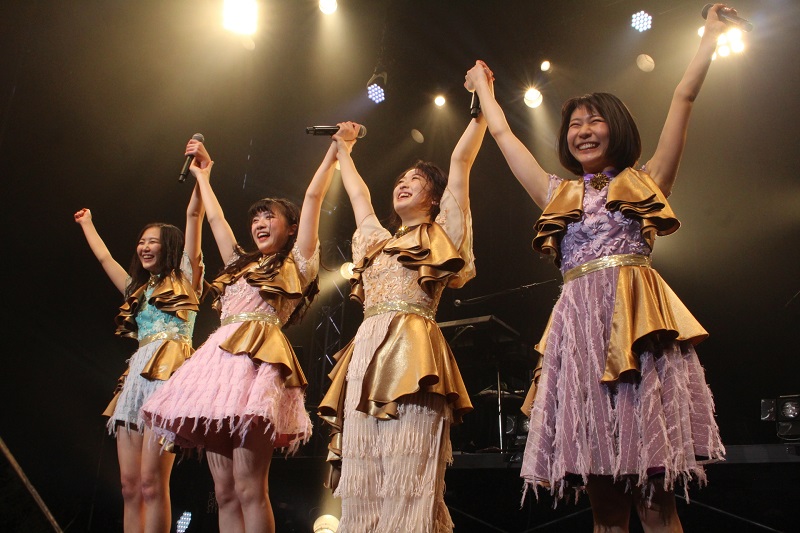 新井ひとみさんは「いつもは4人でパフォーマンスしていますが、後ろを見るとバンドのメンバーがいるから仲間感を感じます」とバンドライブを喜んだ。