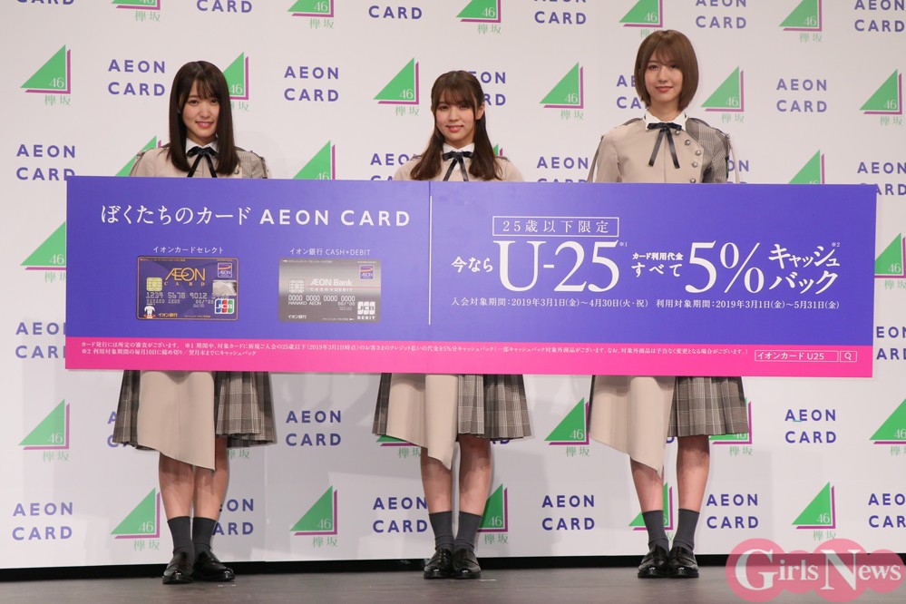 イオンカードのキャンペーンキャラクターに選ばれた欅坂46メンバーの小林由依・菅井友香・土生瑞穂が先月25日、都内にて開催された就任イベントに出席した。