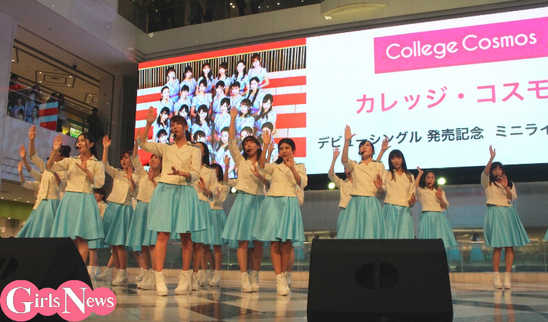 カレッジ・コスモスは、主要大学ミスコンファイナリストを中心にスペースクラフトがプロデュースする「キャンパスクィーン」の選抜メンバーに、カントリー・ガールズの山木梨沙さんが加わり、総勢25名の現役女子大生で2018年10月に結成されたアイドルグループ。この日待望のCDデビューを迎えた。