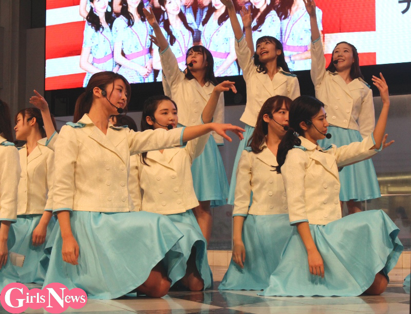 イベントはミニライブから。まずは、昨年10月の結成時から歌い続けている『言葉の水を濾過したい』をエレガントな振りで披露し観客を魅了した。その後、山木さん、松井まりさんを中心にトークタイム。現メンバー24人、それぞれが一言ずつ自己紹介した。
