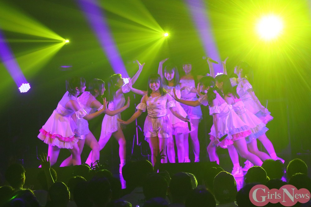 公演には、3日に加入が発表されたばかりの新メンバー、新倉愛海・島崎友莉亜・森永新菜の3人も登場。9人体制での初パフォーマンスとなる『ハッピースLOVE』を披露した。新メンバーはそれぞれの特技も披露し、新倉さんはアクロバットの側転を、島崎さんはギターで弾き語りを、森永さんは「メンバー紹介ラップ」を新メンバーバージョンで披露した。