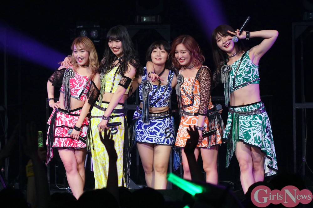 ライブの最後には新メンバーのツイッター、SHOWROOMの解禁など新情報が発表されファンは歓喜。さらにサプライズで明らかになった全国ツアー「アップアップガールズ(2)ライブツアー2019 アオイハル アツイナツ」にメンバーたちも興奮した。静岡出身の中川さんは、地元が開催地に含まれていることを知ると涙を流して喜んだ。