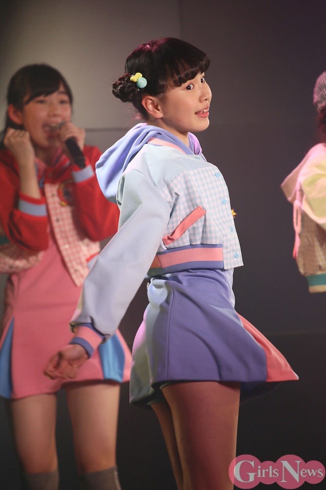 ライブでは春を迎えてセットリストも一新し、ロックンロール・テイストの新曲『キス取りゲーム』など全8曲を披露した。“昭和ファンシー”をテーマとした新衣装もそれぞれの名前が背中に入った可愛らしいものになった。「スカートの丈が短くなって、ドキドキしちゃう。初めてジャケットが付いた衣装で、新しい試みが感じられます」とリーダーの我妻桃実さんは紹介した。
