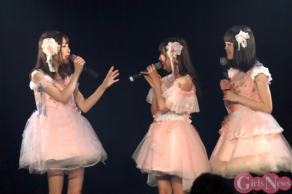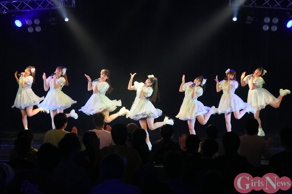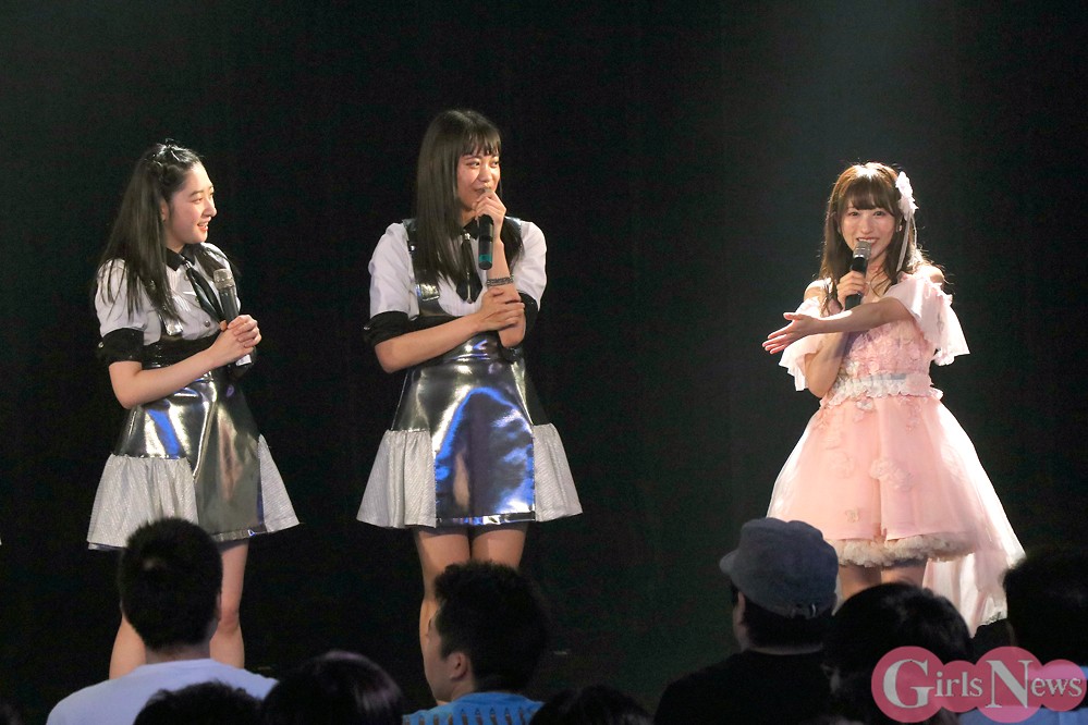 今年2月に卒業した池田は「会うのが久しぶりなので、すっかり身長が…伸びてないですね」と、以前と変わらぬ毒舌でまいにゃをイジり観客の笑いを取った。2年ぶりに出演した初期メンバーの百瀬はる夏は、初ステージで間違えたときと同じミスをリハーサルでして棒立ちになってしまったそうで「本番だけはミスしないように、そこだけ気をつけました」と胸をなでおろした。昨年2月に新宿ReNYで卒業公演を行なった伊倉結音も当時を懐かしみながら、久しぶりのステージを存分に楽しんでいるようだった。