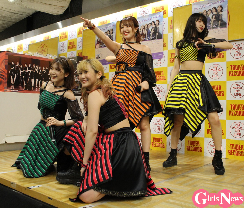 5人組アイドルグループ・アップアップガールズ(仮)が25日、タワーレコード新宿店でトリプル A 面シングル『Da Dan Dance!/ヒート ビート アイランド/5 to the 5th Power』の発売記念イベントを開催。イベントには“松竹芸能のカトパン”こと芸人の餅田コシヒカリさんが新曲の応援ゲストとして登場。また公演中、8月9日(金)、東京・表参道GROUNDにて『5 to the 5th Power』55円×55曲ライブを開催することが発表された。