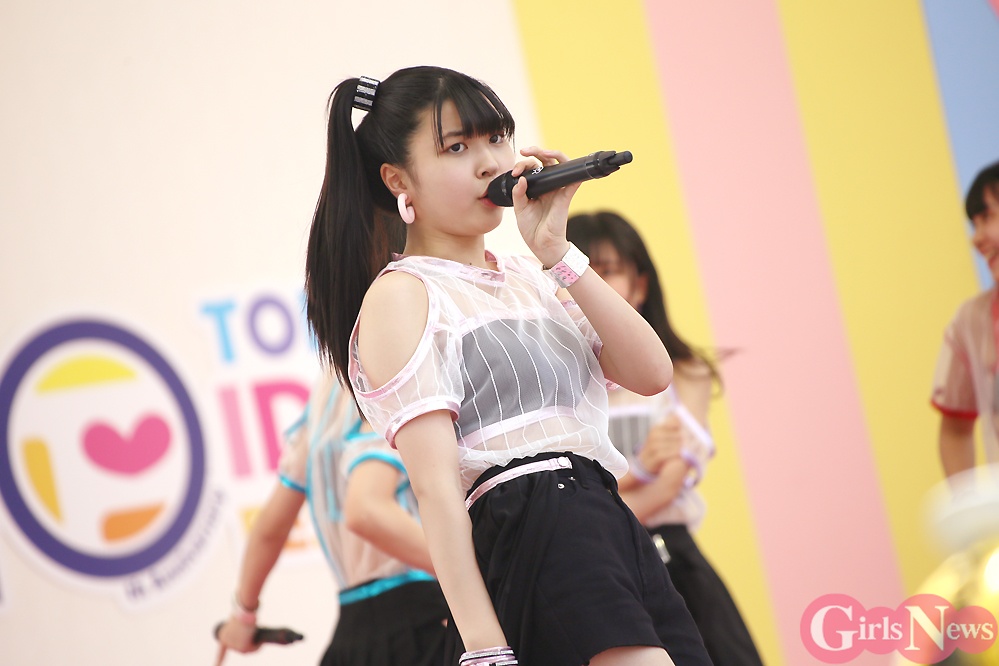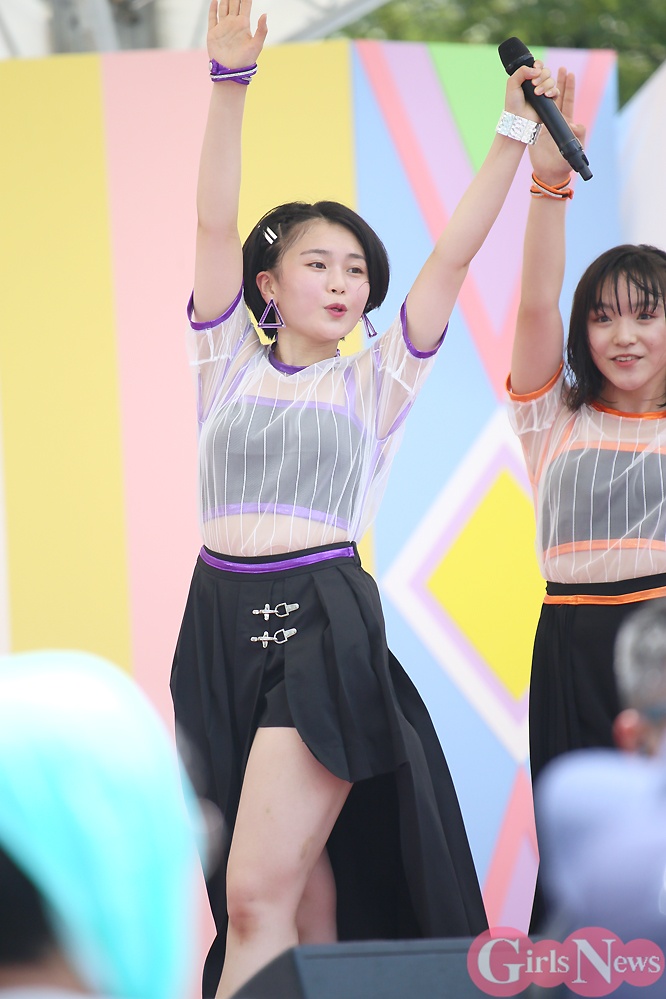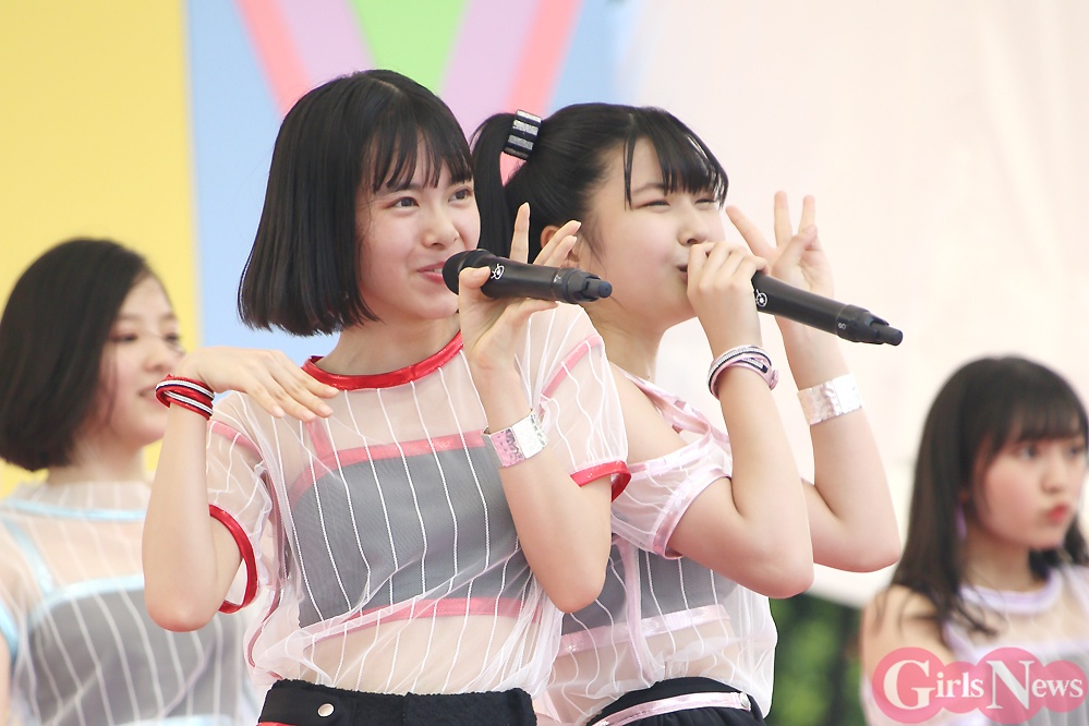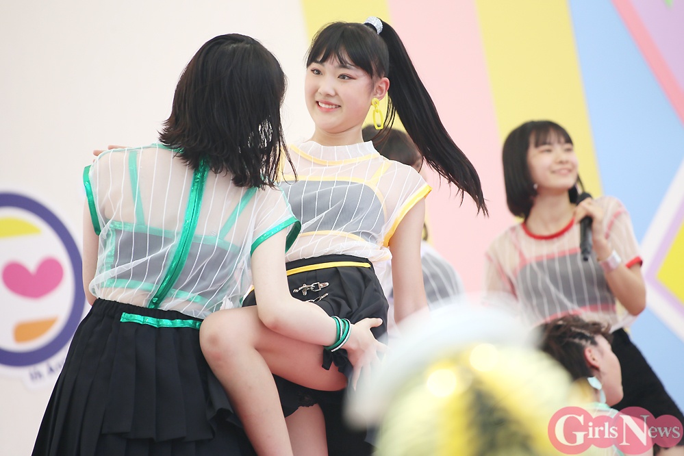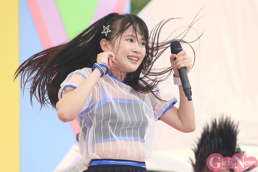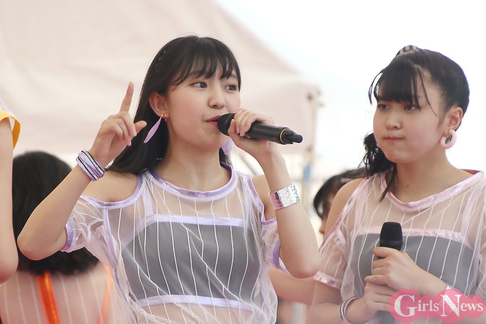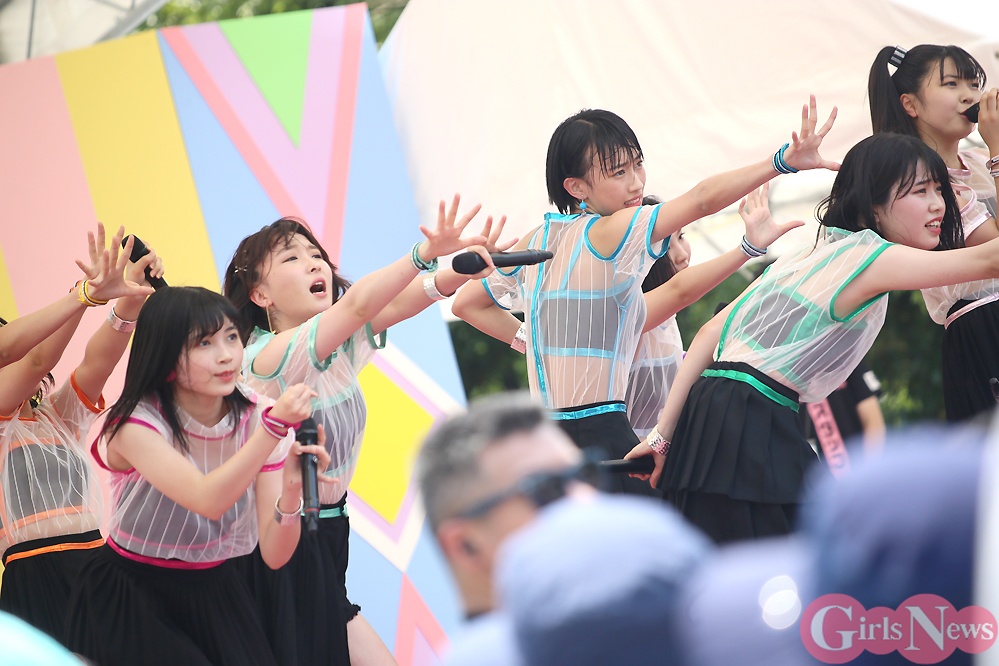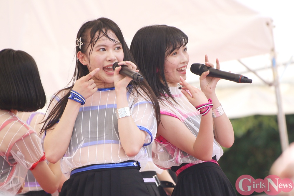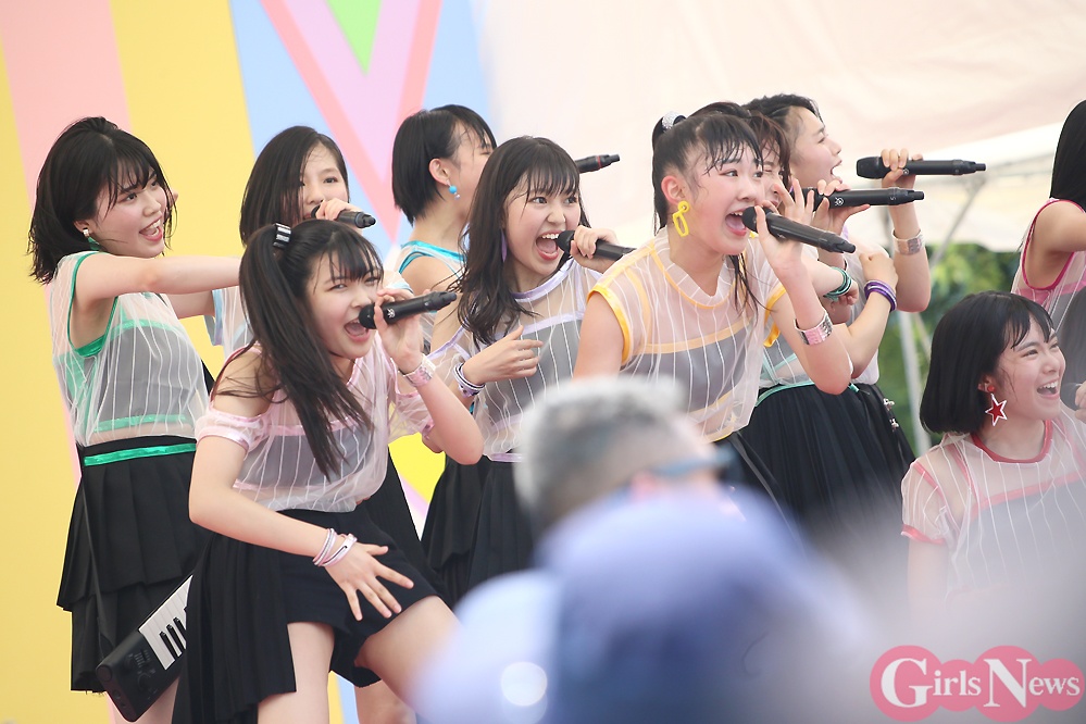 メンバーは1曲目に『アツイ!』を全力でパフォーマンス。灼熱の会場をさらにアツく盛り上げた。続けて、先輩グループ「Juice=Juiceの『Fiesta! Fiesta!』とモーニング娘。『泡沫サタデーナイト!』を続けてカバーし観客を魅了した。