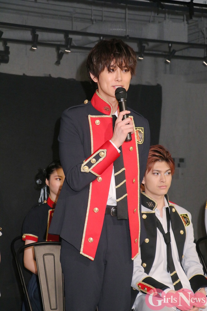 「実際に公演でも使われる“フュージョニカルスクリーン” という、名前からしてカッコいい紗幕をきょう初めて見たのですが、 自分たちが演じる芝居や音楽にプロジェクターで投影される映像がプラスされて、どうなっていくんだろうと、またワクワクとが増えました」