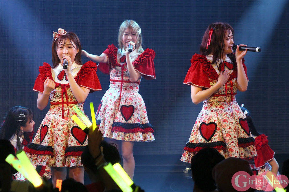 越智が続けて、「イケてるハーツがとっても楽しくて、楽しかったって過去形にしたくないから、今も楽しいんですけど、1日1日これからを大切にして、今日もだし、次の対バンもだし、全部全部今まで以上に思い出を刻んでいきたいと思います」と表情を明るくして語ると、内田も顔を上げて「1期生はもちろん2期生もすごい頼もしくなって、これからのイケてるハーツを安心して卒業しても任せられるなって」と微笑んだ。