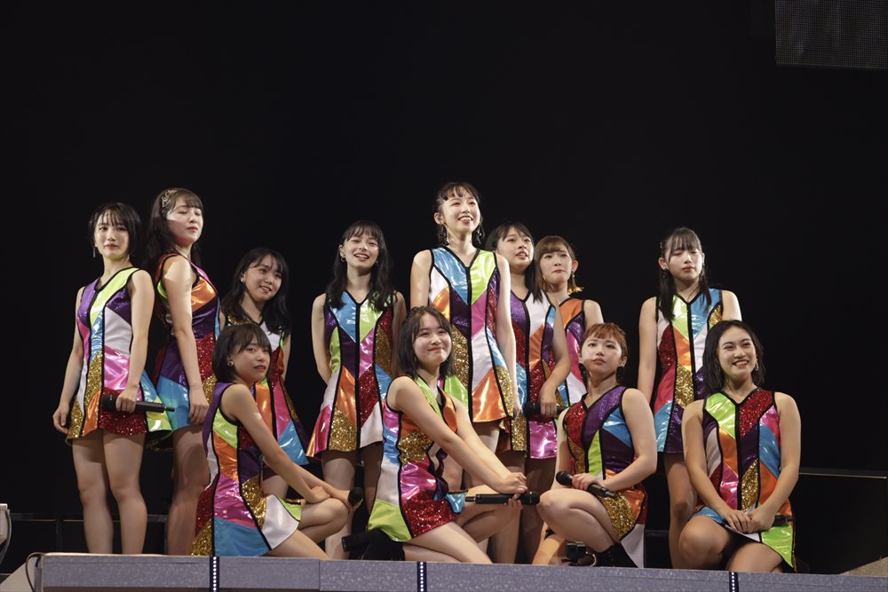 勝田さんのメンバーカラーであるオレンジのサイリウム一色で染められた会場は「りなぷ~」コールの大合唱で幕を開けた。この日は7月に加入が発表されていた新メンバー・橋迫鈴さんの初ステージでもあり、この12人での最初で最後のパフォーマンスをファンたちは刮目して見守った。
