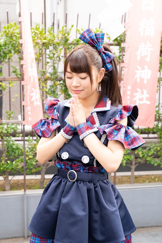 晴れやかな気持ちで参拝を終えたアプガ(2)。グループを代表して高萩さんが、「今日は、映画『天気の子』で舞台になったといわれている朝日稲荷神社にお参りをしに来ました。映画も大ヒットしてるということで、そのパワーを授かりたいなとアプガ(2)のいろいろなヒット祈願に来たんです。私たち、ほんとにほんとに売れたいし、ヒットしたいんですよ。でも、屋上に神社があるのはすごいですよね。初の神社でのヒット祈願で、こんなに神聖な場所にメンバーと一緒に来れてよかったです。これからがすごく楽しみになりましたし、もっともっとがんばります!」と意気込みを語った。