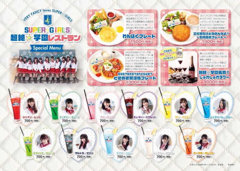 このコラボレストランでは、SUPER☆GiRLSの5thフルアルバム『超絶★学園~ときめきHighレンジ!!!~』(12月25日発売)をイメージしたオリジナルドリンクやフードをはじめ、ここでしか見られない映像やカフェ限定ノベルティーのプレゼントなど、SUPER☆GiRLSの魅力をたっぷり味わえる。