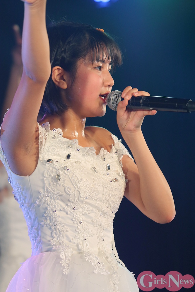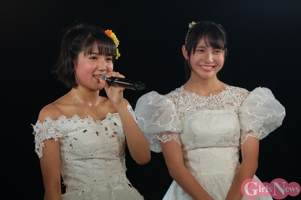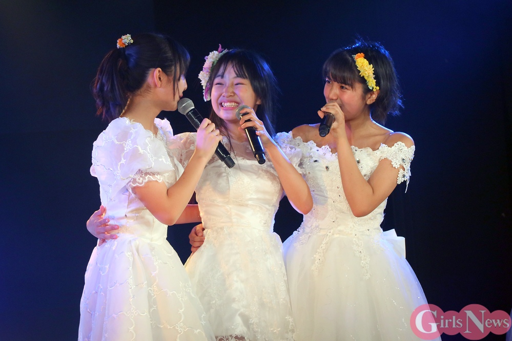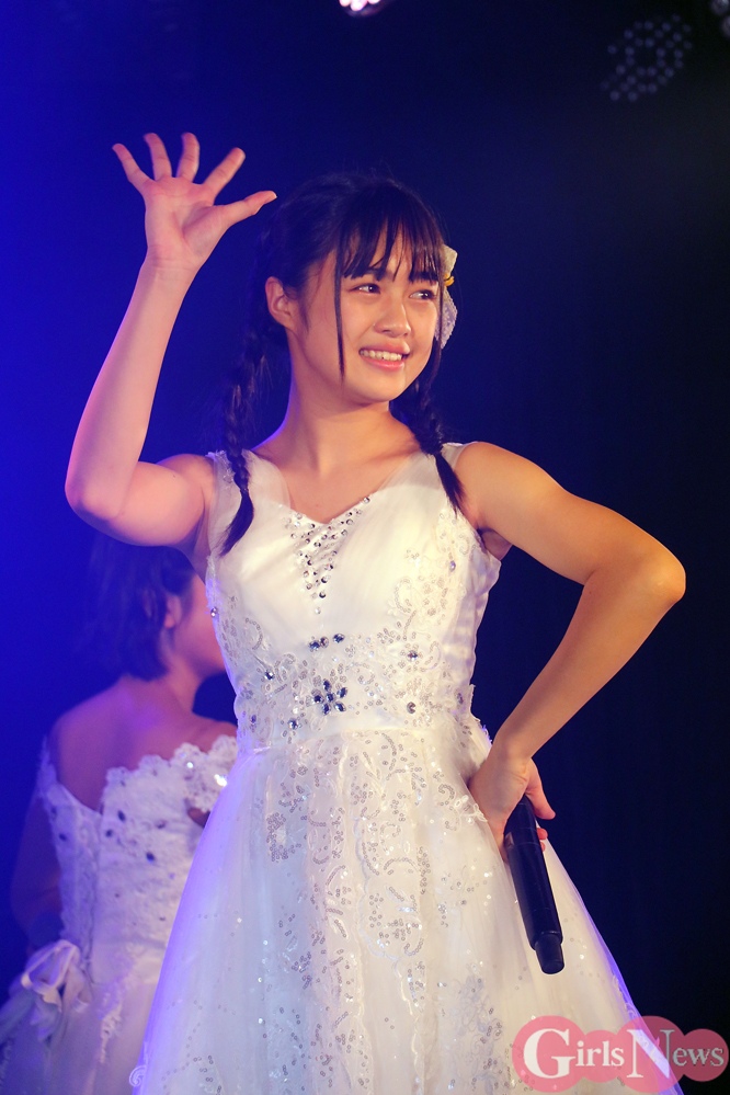 戸羽さんは2年半の活動を「最初は何も出来なくて不安だったのが、今では自分でも判るくらい成長が出来ました」と振り返りつつ、「いつも皆様の笑顔を見ると元気になって、皆さまがいたから辛いことも乗り越えられました」と話しながら次第に涙ぐんだ。そして、「やっぱり、私は皆様が大好きなので、今日でステージに立つことが最後なのが自分でも信じられません。こんな何も出来ない私を温かく見守ってくださって、本当にありがとうございました」と感謝の気持ちをファンに伝えた。