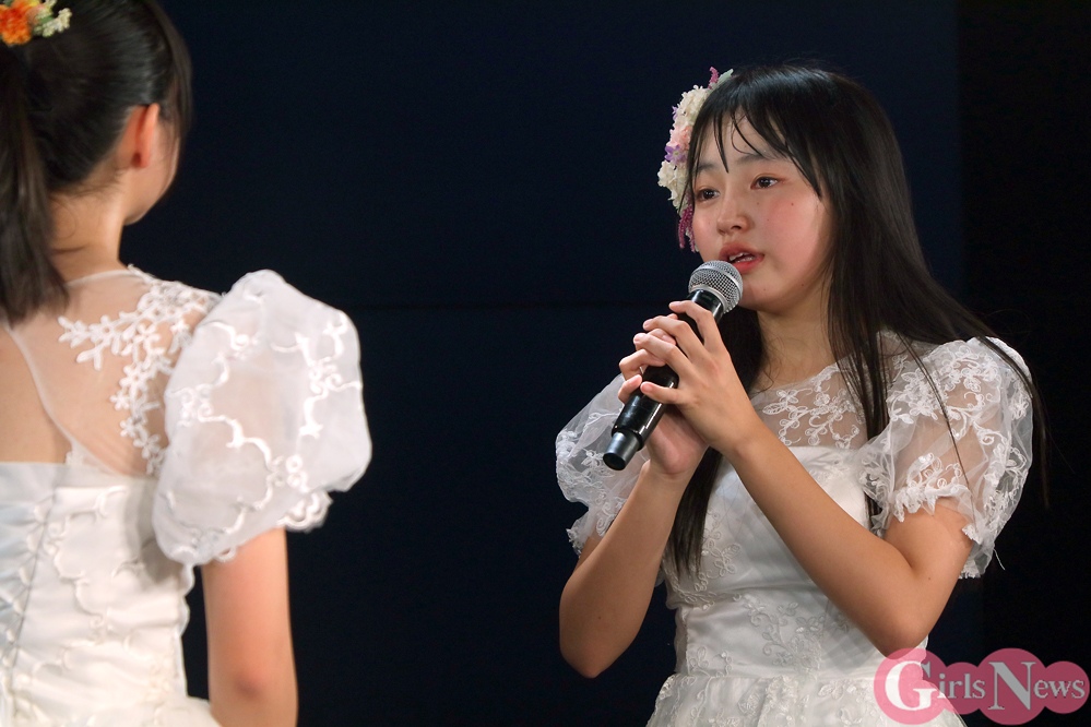 寺島さんは「今まで皆さんに支えられてきたので、味方のいない世界に飛び込むのは怖いし、不安もあります。でも、16歳にしてこんなに愛おしい大切な居場所が出来たのはほんとうに貴重な体験でした」と心境を語った。そして、最後のワガママとして「大好きな皆様だからこそ、私の背中を全力で押して欲しい。不安なことがあってもファンの皆様を思い出せば、この道は間違ってなかったと思えると思う」と呼びかけ、残りのライブを楽しい思い出にしたいと語った。