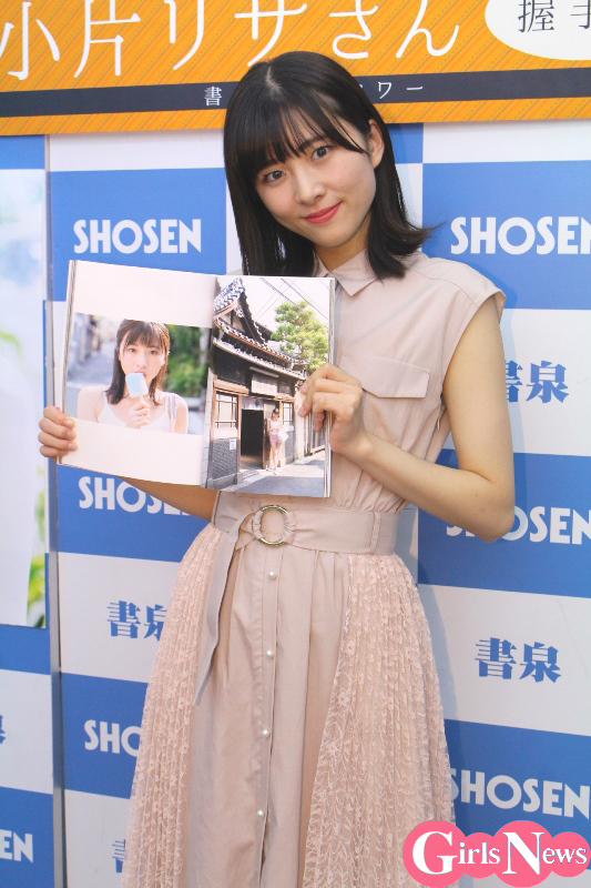 つばきファクトリーの小片リサさんがファースト写真集『オレンジの砂時計~リサ二十歳~』(ワニブックス)の発売記念握手会を7日、東京・書泉ブックタワーにて開催した。