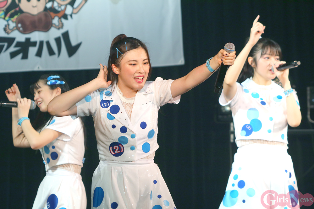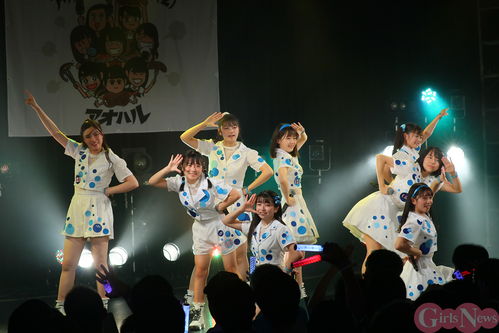 青の水玉の新衣装に身をつつんだメンバーたちは、12日に発売される1stアルバム『アオハル1st』 の収録曲から、人気の定番曲や、新曲『パジャマDEタンテボー』 『ブルースカイブルース』 などをパフォーマンスしたほか、芝居やアカペラなど初めての試みも取り入れた盛りだくさんの内容で、アップアップガールズ(2)の新たな魅力をアピールした。