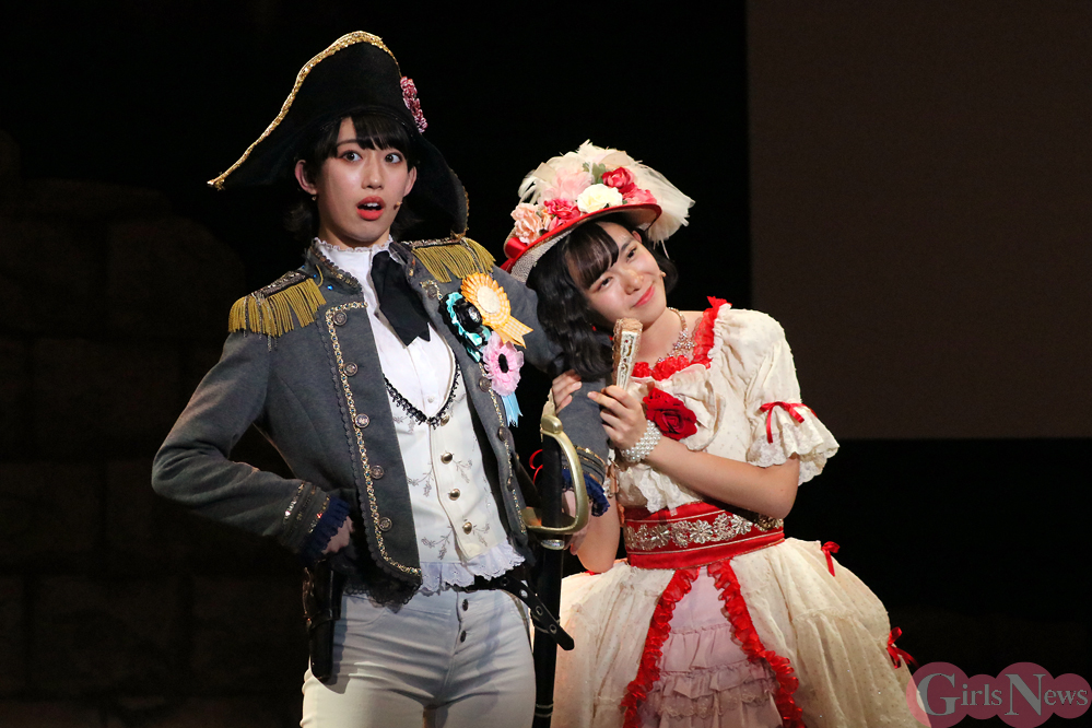 2つのグループが初めてがっつり組んだ作品で、浜浦彩乃さんは、「今まで喋ったことがない子が多かったのですが、この舞台の稽古が始まってから喋るようになった子が増えて嬉しいですね。今まで怖いと思われていたのかなと思うんですけど、怖くないです!」と笑顔。「チームワークもばっちり。みんなの心が一つになってますから」と仲の良さをアピールした。