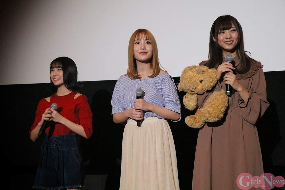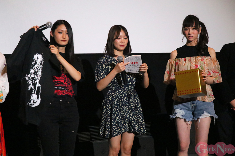 相沢さんは「みんなとはライブで対バンやコラボをすることは多いんですけど、スクリーンで共演してお客様のために一つのものを作り上げたので、みなさんに受け止めてもらえたら嬉しい。みんなの初々しさや、普段とガラっと違う女優魂を感じてもらえたら」と映画に込めた気持ちを伝えた。また、相沢さんはユニット「LAVILITH」として本作の主題歌『ペイルライダー』を担当しており、「タイアップが決まってから歌詞を突き詰めて、より映画を観た方の気持ちを揺さぶる歌になりました」と紹介した。