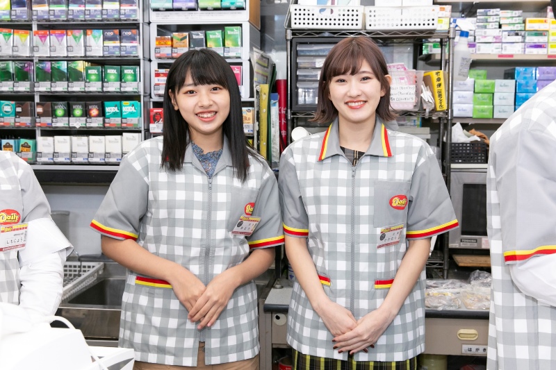 両ペアが担当したのは商品の袋詰めとキャンペーン特典であるクリアファイル・ステッ カーのお渡し。開始前に緊張した面持ちを見せていたのは太田遥香さん。惣菜を丁寧 に詰めたり、ホットのペットボトル飲料とアイスクリームを別々の袋に分けたりしながらも客の前では笑顔。また、ペアを組んだ川村文乃さんは買い物を終えたお客様に「ま たお待ちしております!」など気配りをみせ、わずかに空いた時間にはレジ機の仕組みを聞いて大田さんとともに驚き顔をみせていた。