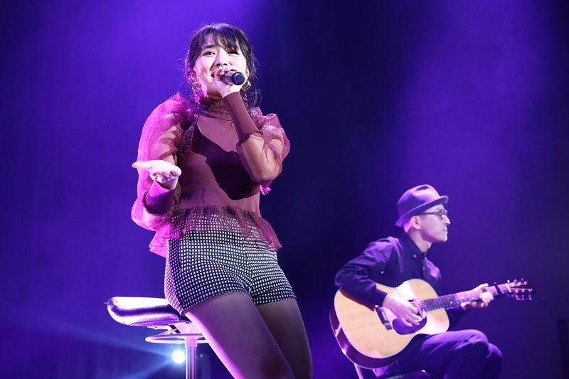 TPDが残した熱気や興奮が冷めやらぬステージに登場したのは、上西星来と脇あかりの二人によるユニット・「赤の流星」。新曲『光のペガサス』を初披露したほか、阿吽の呼吸で織りなす二人の美しい世界観を見せた。この日、ラストのステージを飾ったのは、23歳のバースデーである大晦日を目前に控えた、TPDのリーダー・高嶋菜七。『Pretender』や『さくらんぼ』など、普段のステージでは見られないカバーナンバーのほか、ギタリストと共に初のアコースティックアレンジにも挑戦。ファンに人気のTPDのナンバー『Dreamin’』を初アコースティックバージョンでエモーショナルに歌い上げた。