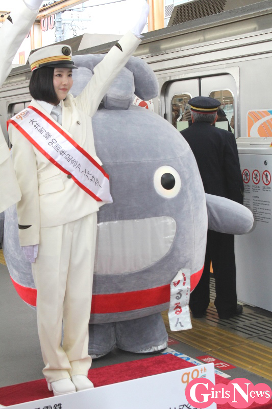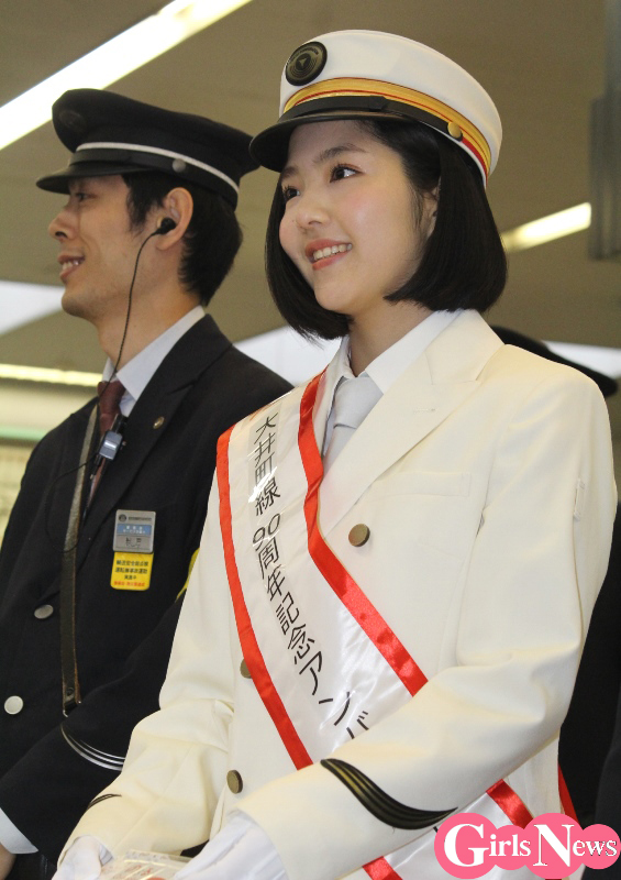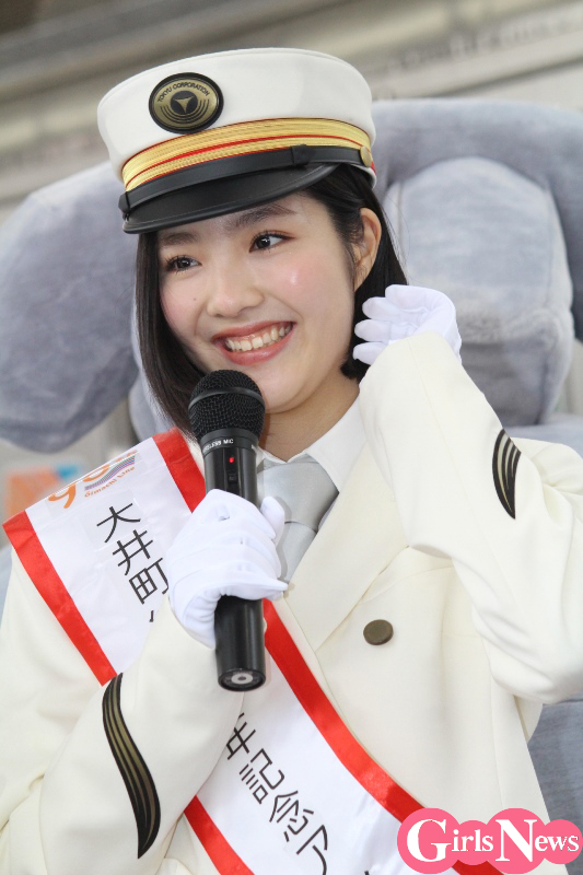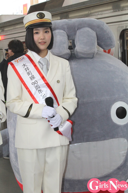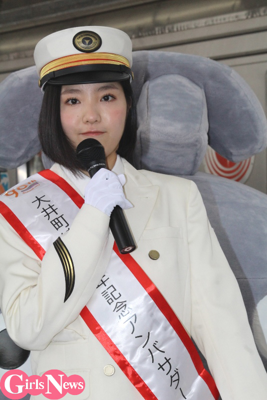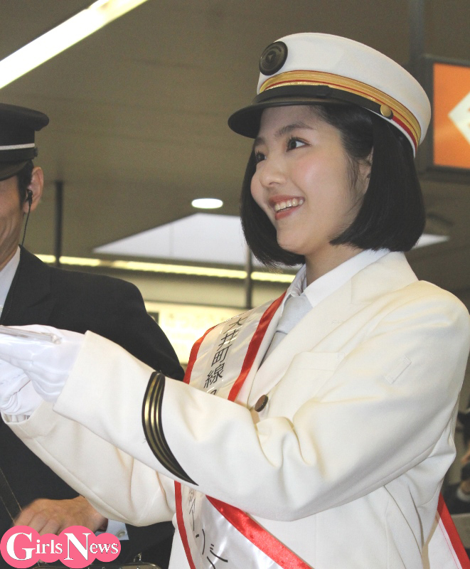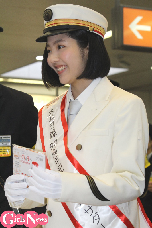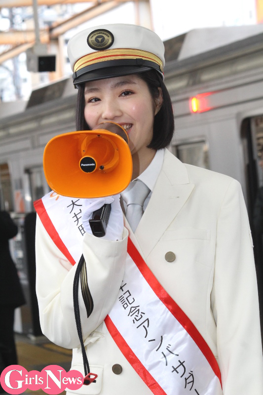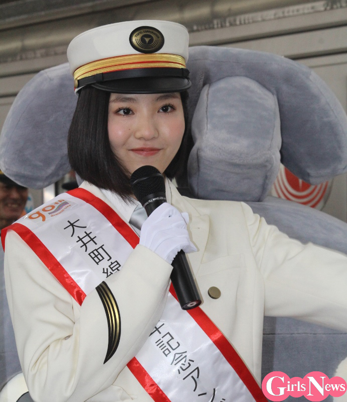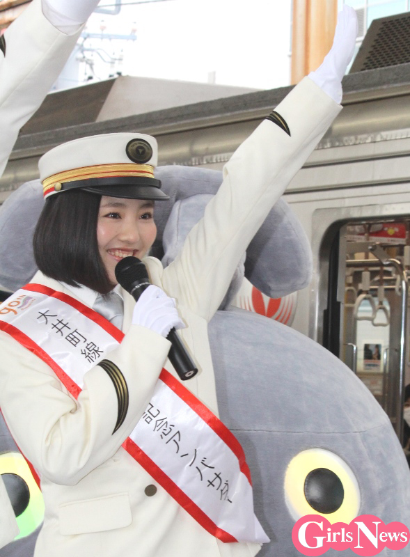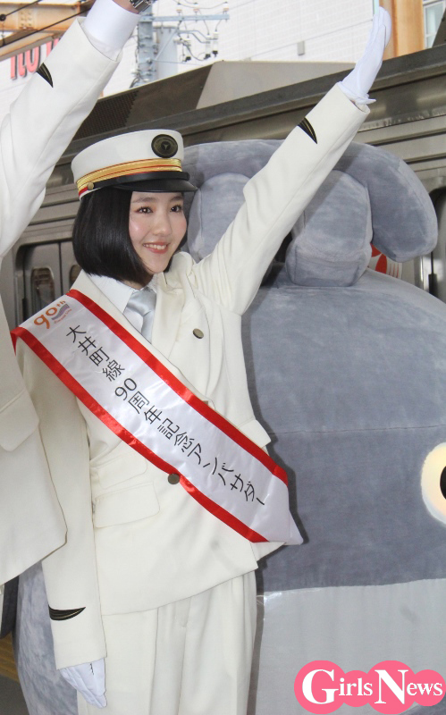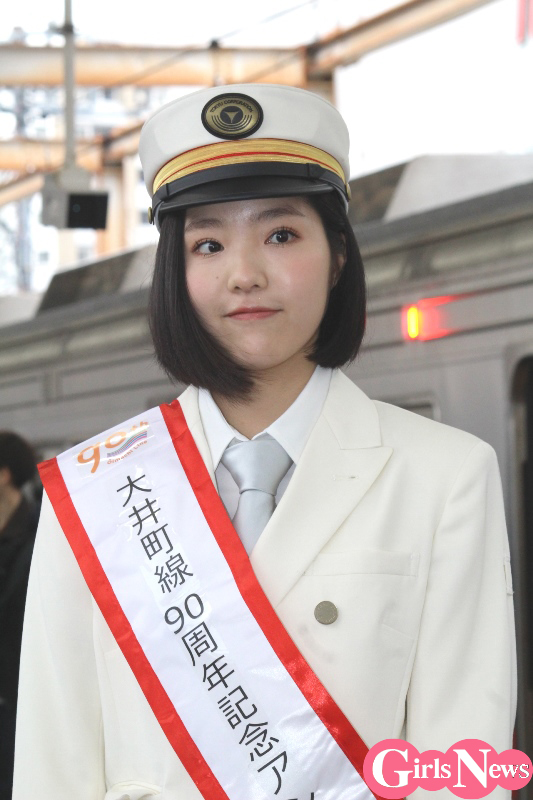 ハロー!プロジェクトのアイドルグループ「BEYOOOOONDS」のメンバー・一岡伶奈さんが「大井町線90周年記念アンバサダー」に選ばれ、25日、大井町駅の一日駅長に就任、90周年記念列車の出発合図を体験した。鉄道好きの一岡さんが鉄道関連の仕事をするのはこれが初。「念願でした」と感激の表情を見せた。