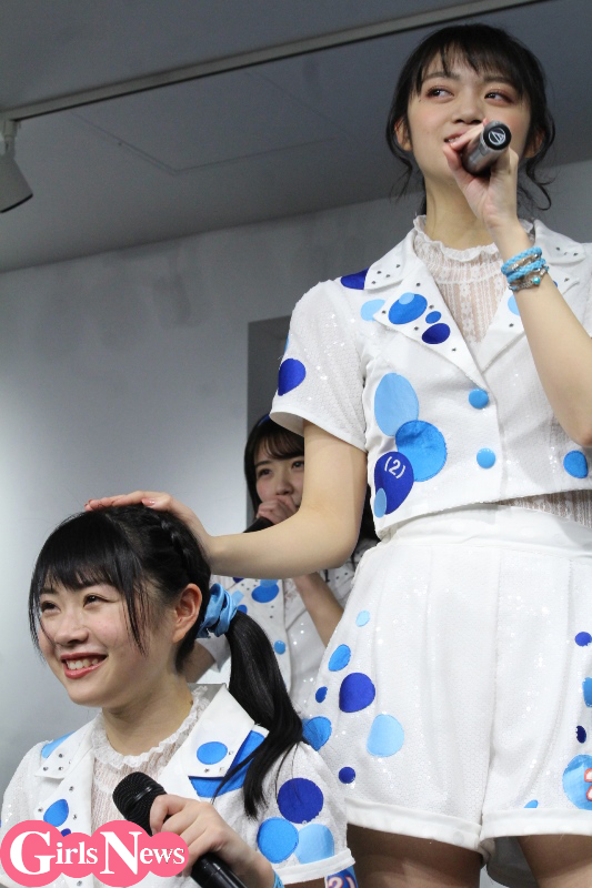 今回のリリースイベントは、回ごとにメンバー一人一人が持ち回りでプロデュースした内容となっており、この日の14時30分開演の回は中川千尋さんがプロデュースを担当、“世界で一番カッコいい(2)”をテーマに実施した。ニューシングルからの2曲のほか『エンジェル演じて20年』『っていう初恋の約束』など、少女の繊細な心情を描いた、カッコいいアップテンポナンバーを披露した。