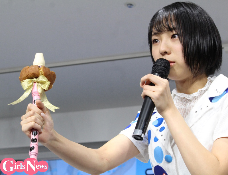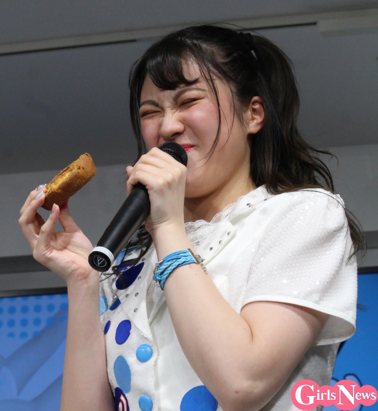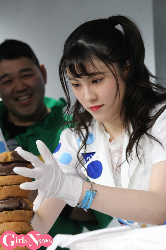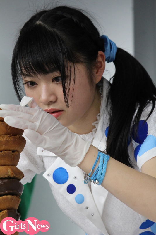 MCタイムでは中川さんの発案で、新曲のタイトルにちなみ、“世界で一番高いドーナッツツリーを作ろう”という企画を実施。1分間で、用意されたリングドーナッツを縦に積み上げて、世界記録の12個を目指そうというものだ。トップバッターの中川さんはいきなり14個を積み上げ、非公式ながらあっさり記録更新し、メンバーたちを驚かせた。続く佐々木ほのかさん、森永新菜さんも中川さんと同じペースで順調に積み上げていったが最後に崩してしまい、記録はゼロに。