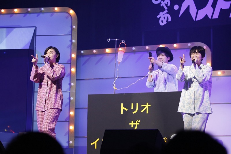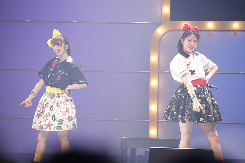 続いて、5位には中山と真山によるユニット・リコリカで「これでいいのだ!」がランクイン。会場は真山のメンバーカラー紫と中山のメンバーカラー水色のペンライトで埋め尽くされた。4位には星名、小林、中山の3人によるニューフリンデルガールで「神様の言うとおり」。スタンドマイクを活用し、爽やかなステージを飾った。更に3位には柏木と小林、そして点滴を打ちながら駆け付けたDJタミフルによるトリオ・ザ・インフルエンザ2で「一生一緒 いいっしょ?」がランクイン。柏木と小林の身長差およそ12センチのデコボコユニットによるラップナンバーであった。ここでのMCトークではDJタミフルと藤井校長が登場し、DJタミフルからは非売品エビ中紙幣が会場のファンにプレゼントされ、更に藤井校長からは「MUSiCフェス2020」と「ファミえん2020」の開催が発表され会場にファンの歓声が響き渡った。