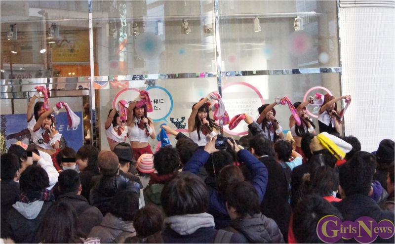 12月28日のイベントでは、冬休み中の学生やお仕事をこっそり抜け出してきたファン、渋谷に買い物に来た人たちが足を止め、寒さに負けずにライブする彼女たちに釘付けになっていた。