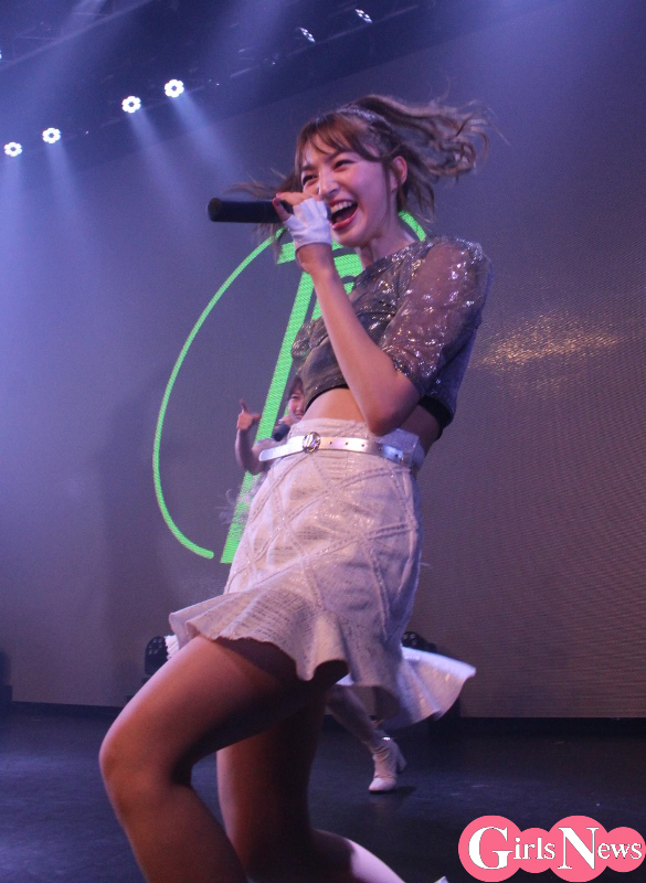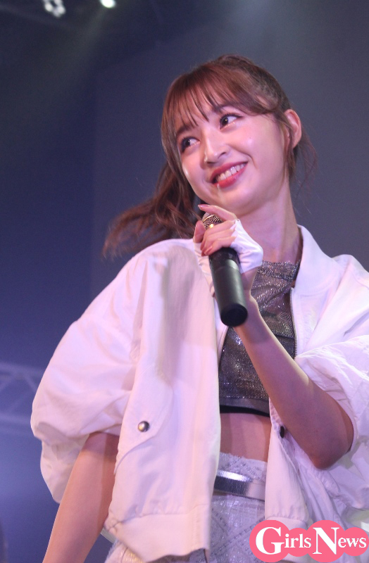 その後『純愛カオス』『HEART WAVES』『SUPER DUPER』『SHYNY LADY』といった新旧ライブ人気曲のあとには、11日に配信リリースされたばかりで、自身がPRイメージキャラクターを務める平塚競輪場のテーマソングにも起用されている新曲『eyes』を初披露した。