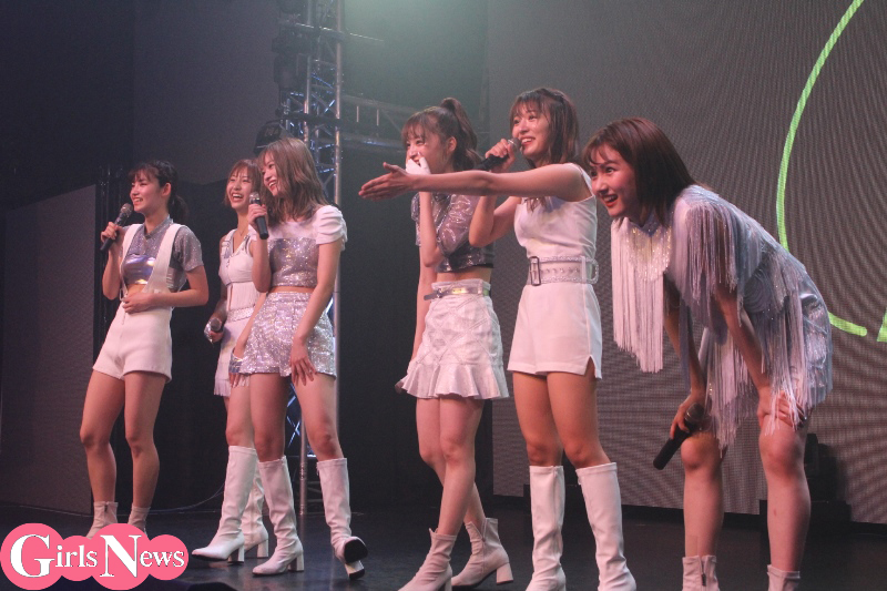 『eyes』=“まなざし”をキーワードにしたこの曲、「応援してくださっている方たちの私たちへのまなざしだったり、ライブ中に私たちがみなさんを見るまなざしだったり、いろんな意味がこめられています」と語るのはリーダーの高嶋菜七さん。「久しぶりの“応援歌”」「みなさんの背中を押すような……」というこの新曲を力強く歌唱した。メンバーの歌声にネット越しの観客も大きな力をもらったことだろう。