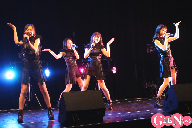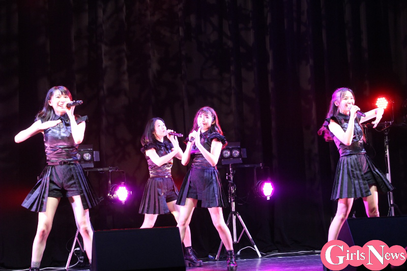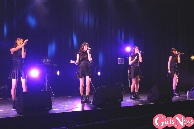 続く25日開催の2日目のステージには、昨年秋ツアーからの黒の衣装で登場した4人。十分な距離をとって横一列に並んだメンバーたちはバラード曲『追憶』を、繊細に、かつ力強く歌い始めた。2曲目もしっとりとしたナンバーの『初恋』。バラードで始まるという、意表を突くようなセットリストだが、ダンスの陰に隠れがちな、女子流の歌の魅力をじっくり味わえるオープニングとなった。