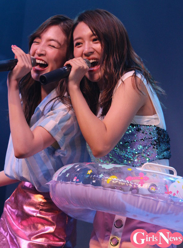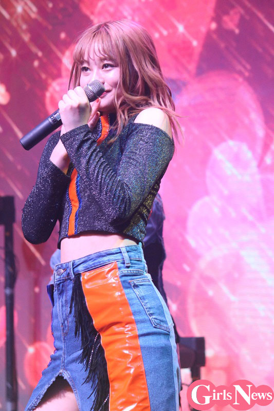 その後は一転『CATCH!!』で椅子を使った、スタイリッシュ&セクシーなパフォーマンスで魅せると、ラストスパートは『逆光 × 礼賛』『SURVIVAL!』『Hey,Girls!』と、ライブ定番曲でたたみかけ、『RAISE YOUR HANDS』を元気いっぱいの笑顔で歌唱、ハッピーな空気につつまれ、本編を締めた。