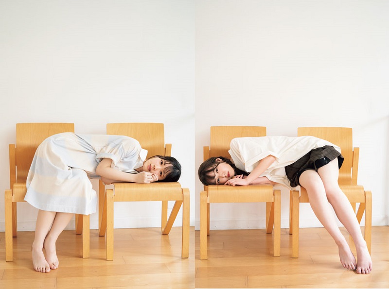 乃木坂46の田村真佑さん&筒井あやめさんは椅子を使った不思議な撮り下ろし。別々の撮影だけど、どこかつながっている。そんな関係性も見どころだ。乃木坂46からは梅澤美波さんも登場。