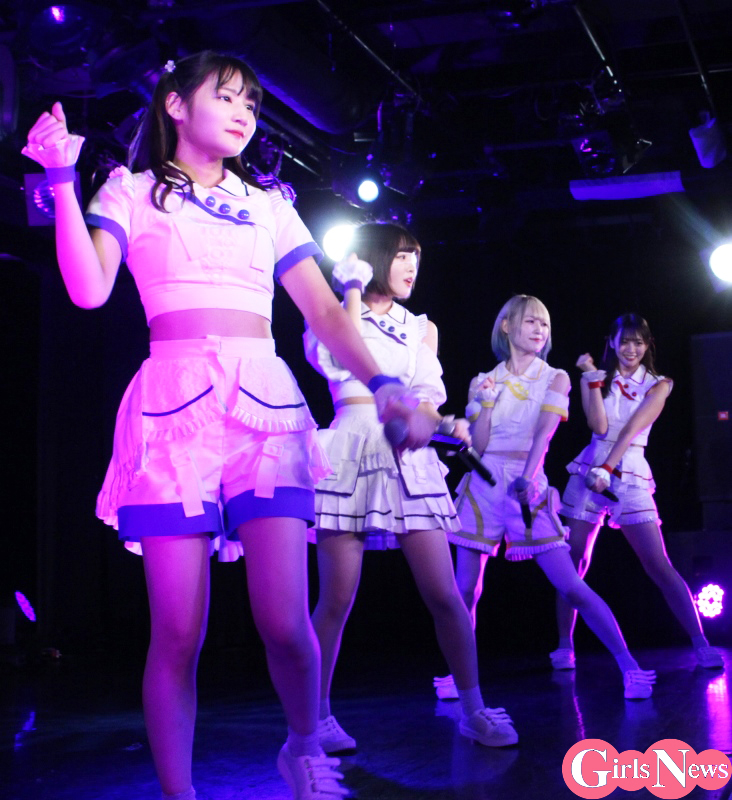 お嬢様学校の制服ふうの衣装に身をつつみ、ちょっとノスタルジックなテイストで、おっとりとした雰囲気やルックスのグループ。ほんわかとした微笑ましい世界観の歌詞や振り付けに、楽曲は正統派アイドルポップスからテクノ調、ロック色の強いものまで多彩なレパートリーとなっている。この日は軽快なサウンドの『春の風速、帳が揺れて』や『ホワイトピース』などを披露した。