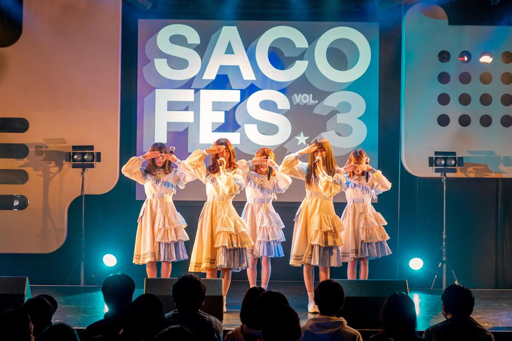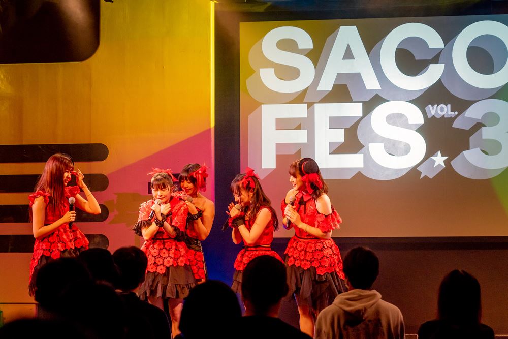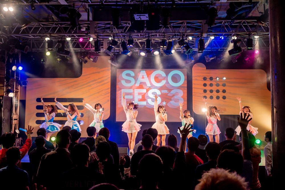 「アイドルが心から楽しむためのアイドルフェス」をコンセプトに掲げ、これまでに3回イベントを実施。いずれも大盛況に終わっているライブイベント。本来であれば今年6月にサコフェスVol.2.5が開催される予定だったが、新型コロナ感染症の影響によりライブ実施を見送り、およそ1年ぶりとなった今回は、初めて配信とリアルライブの同時開催で行われた。