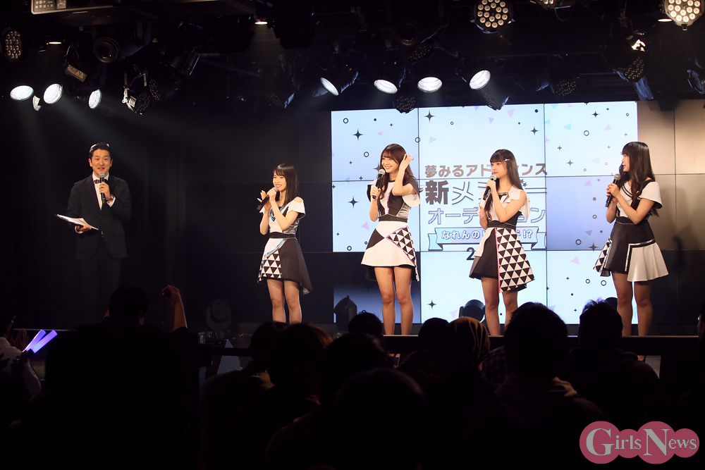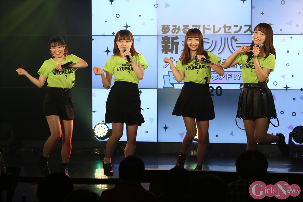 活動9年目を迎えた”夢アド”こと『夢みるアドレセンス』が、来たる10周年を目指して、新たな追加メンバーを募集した。配信審査に残った最終候補者16名(+補欠1名)は、20日にAKIBAカルチャーズ劇場にてお披露目され、4人一組でパフォーマンスを競った。当日はチームグリーンの聖來さんがステージを欠席したが、代わりをほのぽ(補欠合格)が務めた。