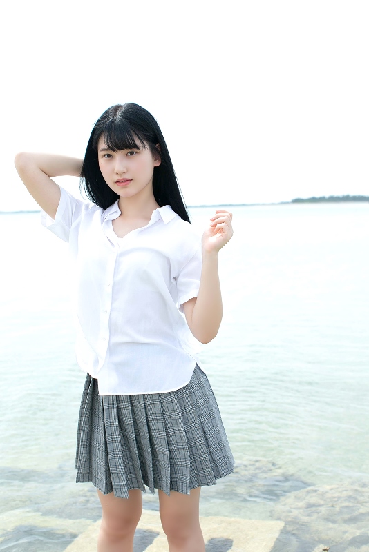 彼女自身「人生初の沖縄」で撮影されたグラビア。可愛い制服姿や大人っぽい衣装にも挑戦している。「私は撮影日は毎回雨という程の雨女なんですけど、出発前日に確認したら沖縄で過ごす2日間が台風の予定だったんです…それでも雨は降らず、晴れている時間もあったので安心しました…!きっと私の雨女度に勝るほどの晴れ女か晴れ男の方がいたのかと思います! 美味しい沖縄料理、綺麗な海、初めて見るヤドカリさん…本当に幸せでした!」と撮影を振り返った。