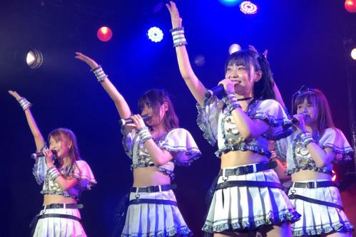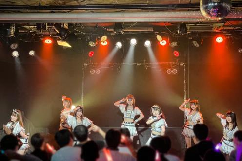 「今回からフォーメーションが変わったりたくさん変化があって、新メンバー候補生もお披露目したり、イケてるハーツはこれからどんどん進化していきますが、今のこの7人のメンバーの姿も目に焼き付けて楽しんでいってください!」宇咲美が語り、『天武の舞、暁の門』イントロの生歌が響き、激しいステップを踏み、コンシューマーゲーム「CHAOS;CHILD らぶchu☆chu!!」のEDテーマ『罪証のルシファー』と迫真のナンバーが続く。メンバーも出演した舞台『時空警察シグレイダー』テーマソングの人気曲、『希望の地図』でオーディエンスの熱は最高潮に。