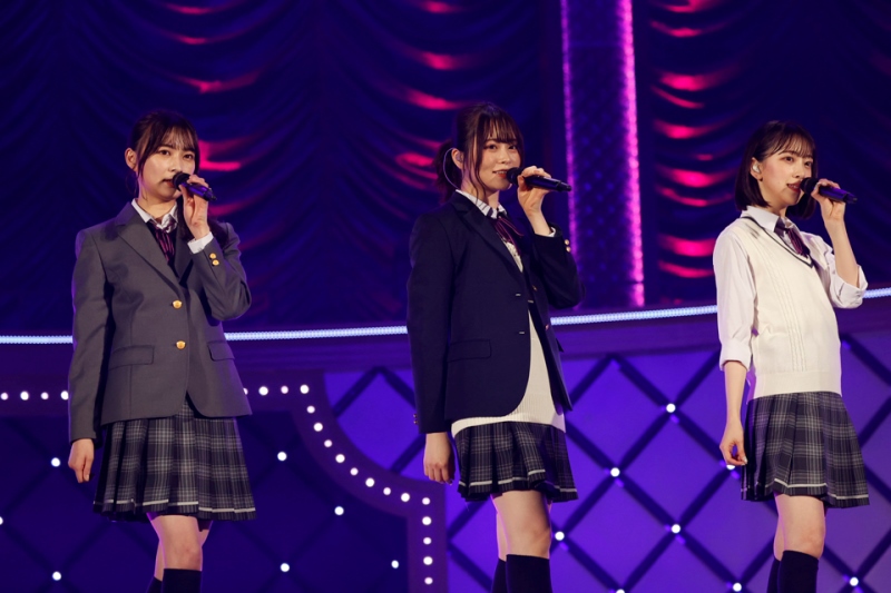 終盤では堀がセンターを務め、「世界で一番 孤独なLover」「ハルジオンが咲く頃」「きっかけ」などを披露。本編ラストでは、総合プロデューサー:秋元康氏が、昨年3月に生配信された「幻の2期生ライブ」のために書き下ろした楽曲「ゆっくりと咲く花」で幕を閉じた。