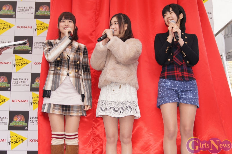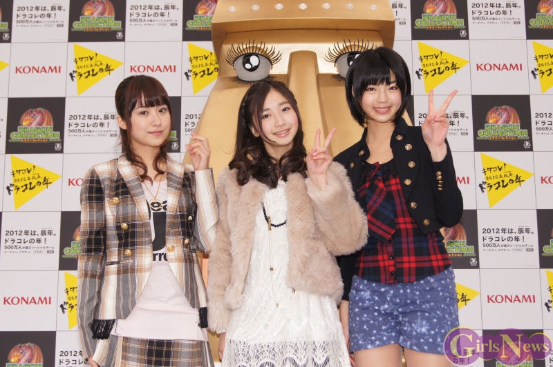 1月22日、GREEにて展開中のKONAMIの大人気ソーシャルゲーム「ドラゴンコレクション」の降臨ステージが渋谷109イベント広場にて行われ、ドラコレガールズを務める ミスマガジン2011の衛藤美彩・綾乃美花・秋月三佳の3人が登場した。