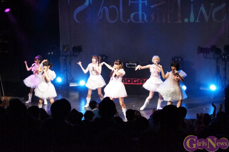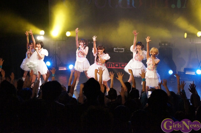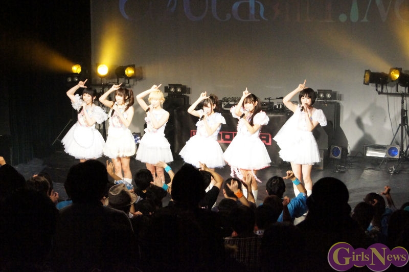 この日は6人体制となって初のライブハウスでのライブ。昨年ニコファーレで兎眠りおんとコラボしたライブの映像が上映されファンのボルテージがヒートアップ。「わっほい!お祭りinc」や「Kiss+Kissで終わらない」「くちづけキボンヌ」など5曲を披露し、6人の息の合ったライブに超満員のファンは熱狂した。