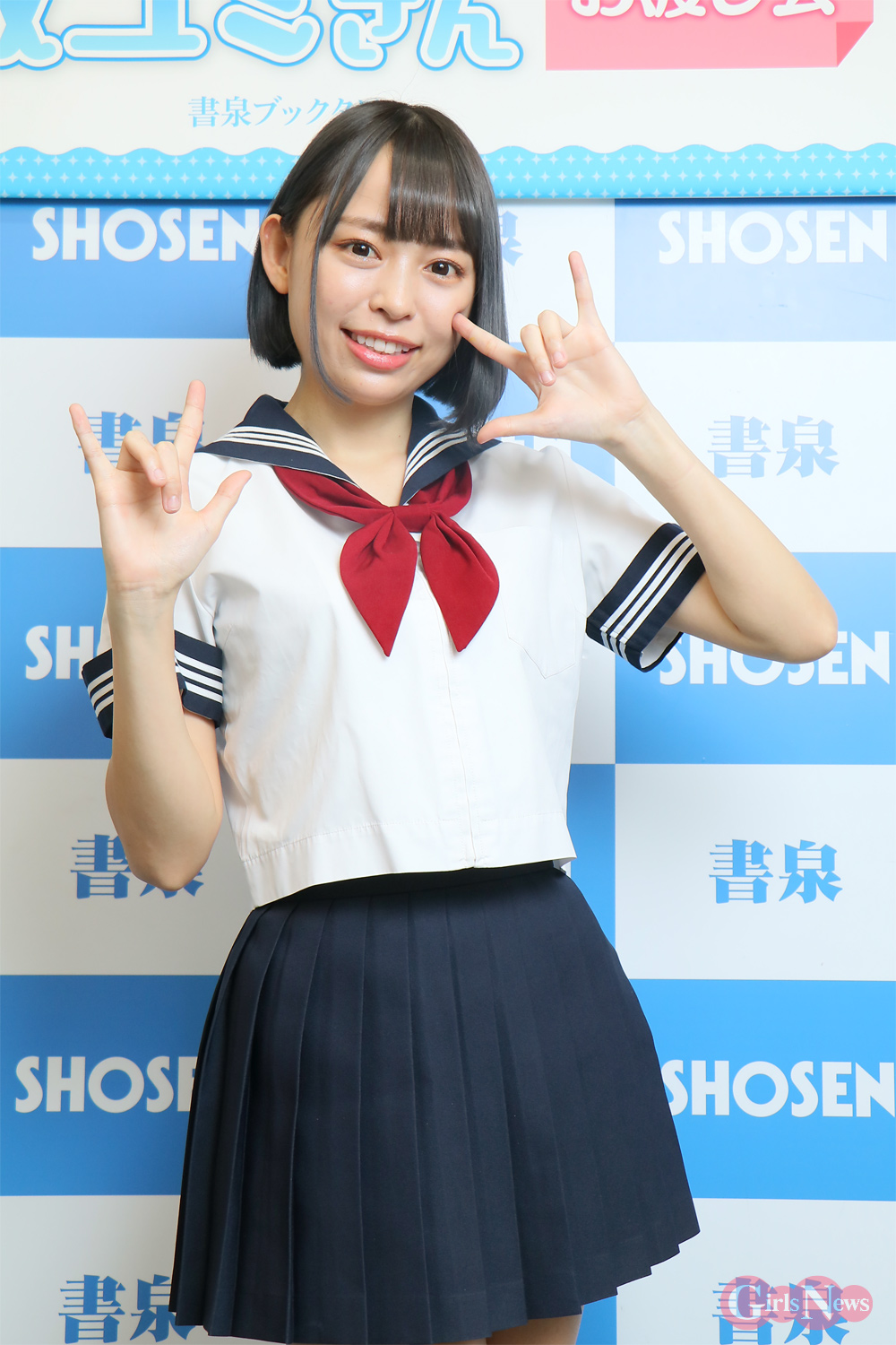 最後に「セーラー服が似合いますね、現役みたい」と褒めると「えーっ、“現役みたい”ですか?」と不満そうに聞き返すユミさん。いいえ、どう見ても現役にしか見えませんとも!!